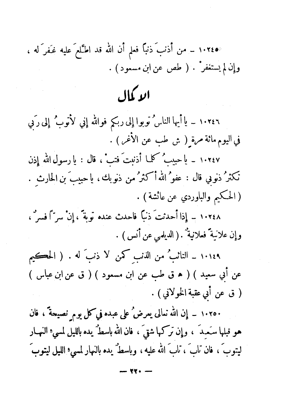 10246- "يا أيها الناس توبوا إلى ربكم فوالله إني لأتوب إلى ربي في اليوم مائة مرة". "ش طب عن الأغر".