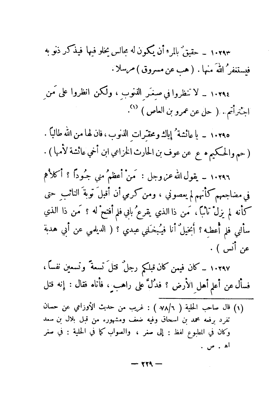 1 قال صاحب الحلية "6/78": غريب من حديث الأوزاعي عن حسان تفرد برفعه محمد بن إسحاق وفيه ضعف ومشهوره من قبل بلال بن سعد وكان في المطبوع لفظ: إلى صغر، والصواب كما في الحلية: في صغر اهـ. ص.