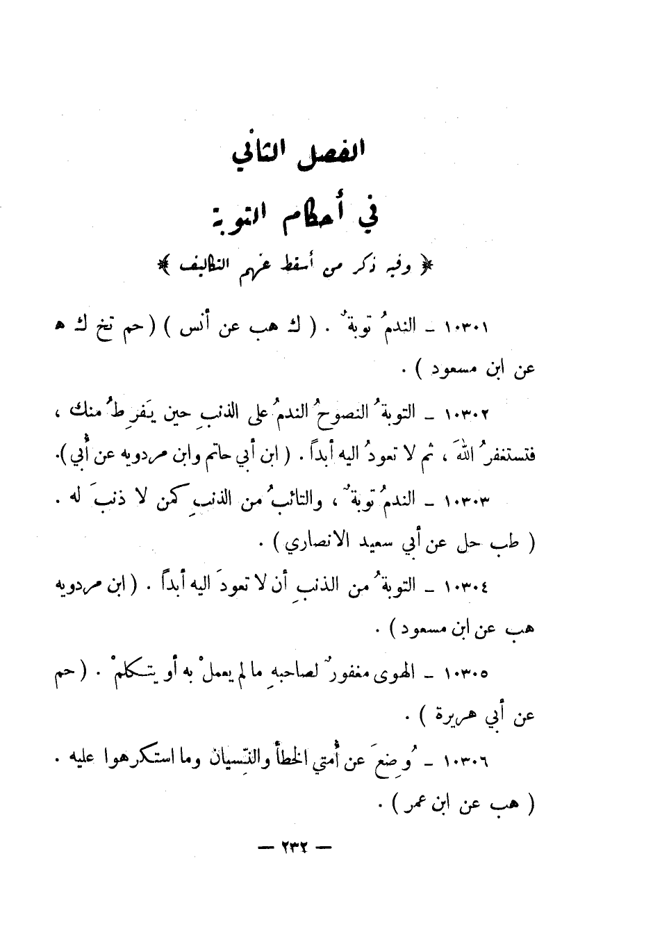 الفصل الثاني: في أحكام التوبة