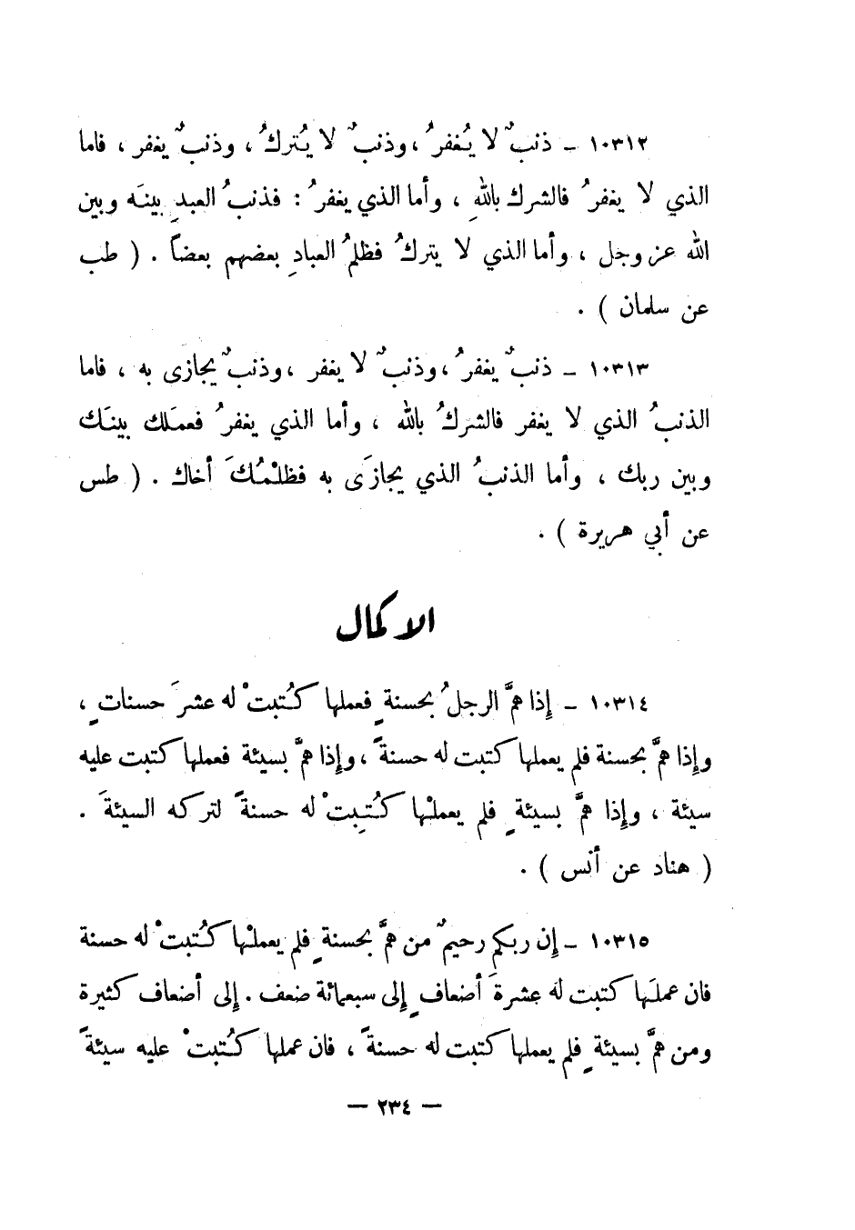 10315- "إن ربكم رحيم من هم بحسنة فلم يعملها كتبت له حسنة فإن عملها كتبت له عشرة أضعاف إلى سبعمائة ضعف. إلى أضعاف كثيرة ومن هم بسيئة فلم يعملها كتبت له حسنة، فإن عملها كتبت عليه سيئة