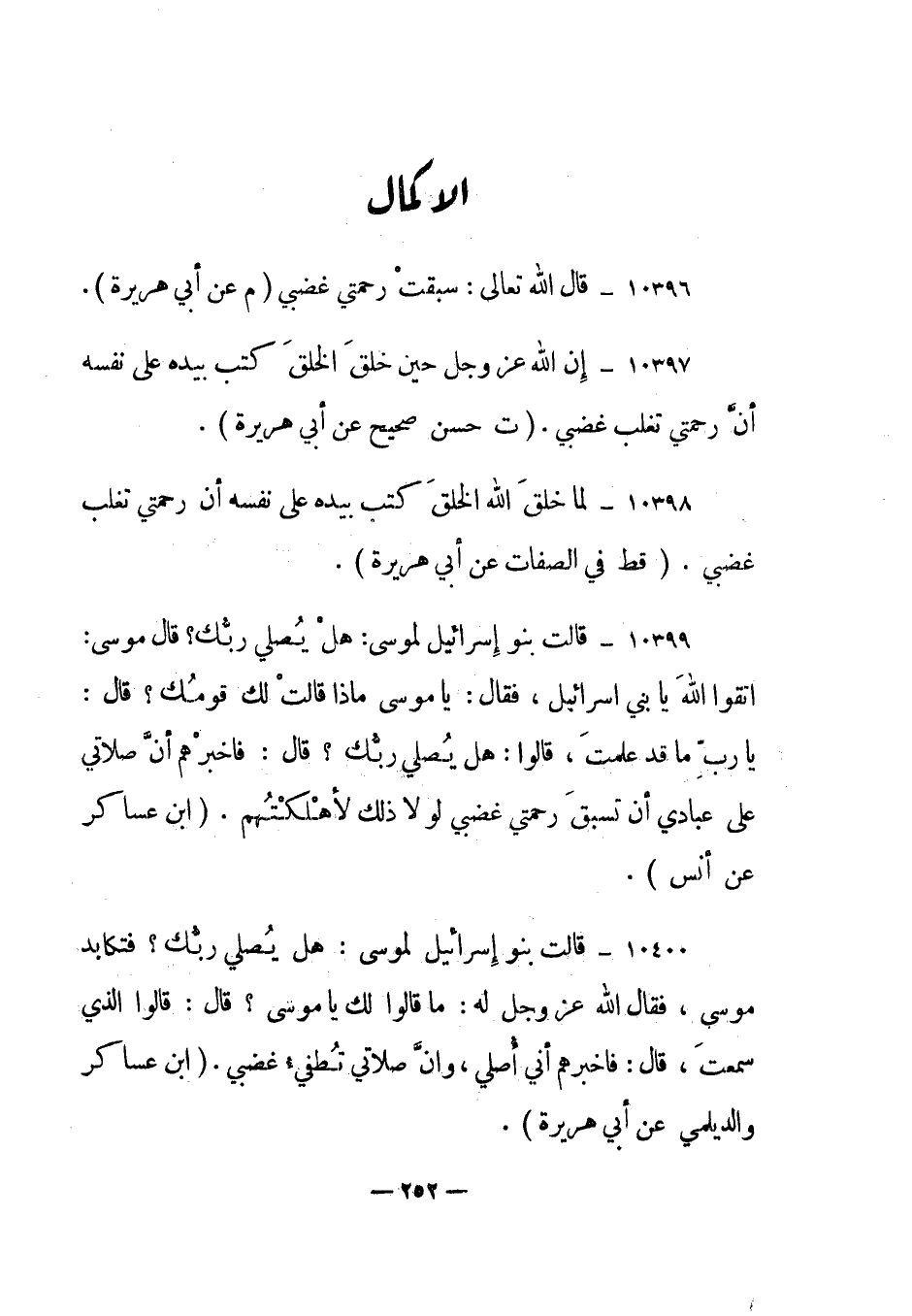 10396- "قال الله تعالى: سبقت رحمتي غضبي". "م عن أبي هريرة".