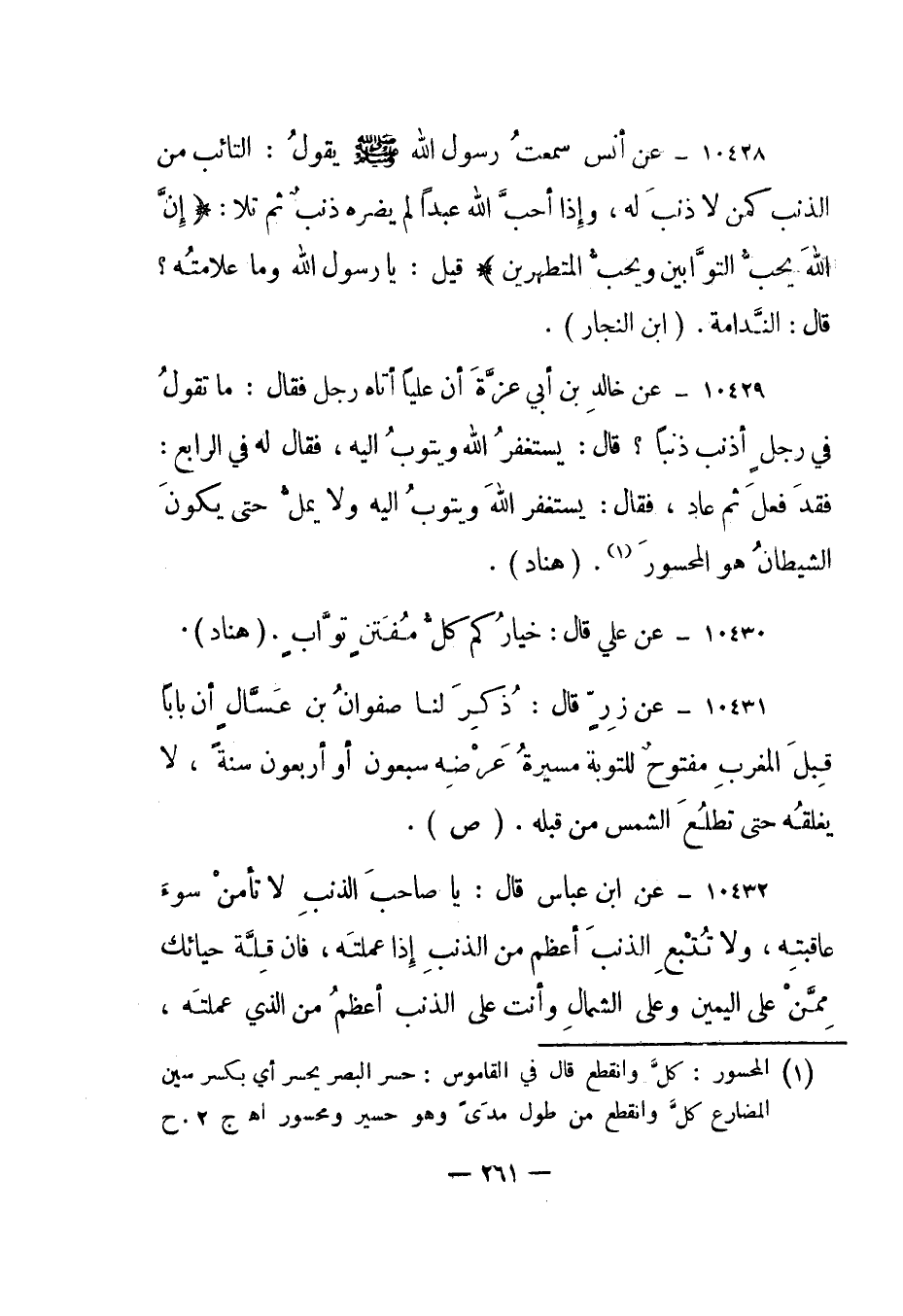 10430- "عن علي قال: خياركم كل مفتن تواب". "هناد".