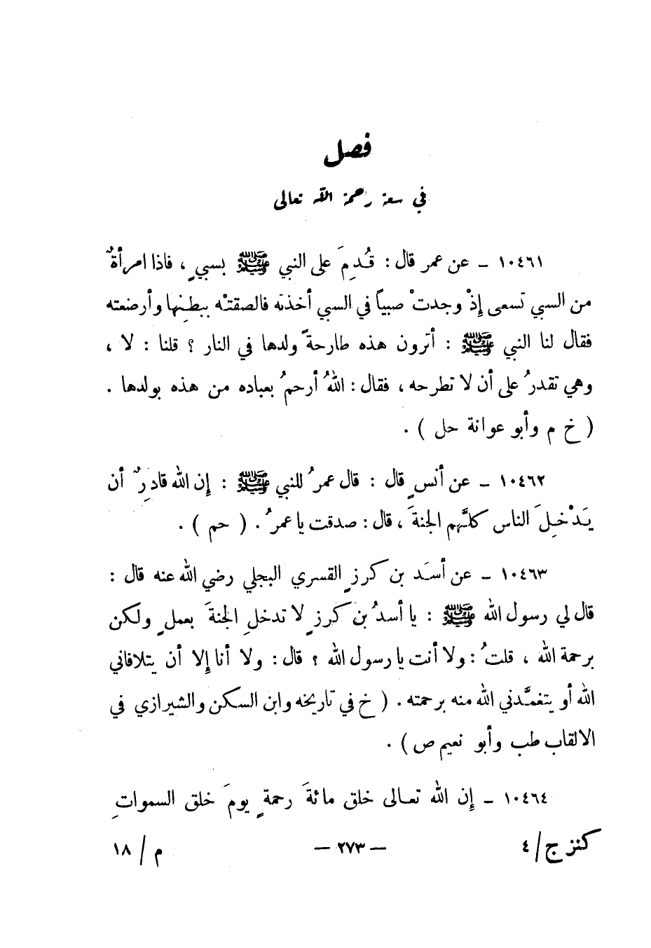 10464- "إن الله تعالى خلق مائة رحمة يوم خلق السموات