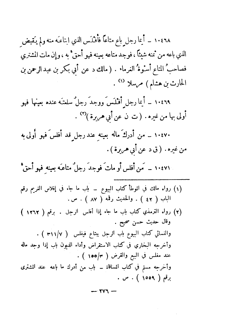 1 رواه مالك في الموطأ كتاب البيوع - باب ما جاء في إفلاس الغريم رقم الباب "42". والحديث رقمه "87". ص.