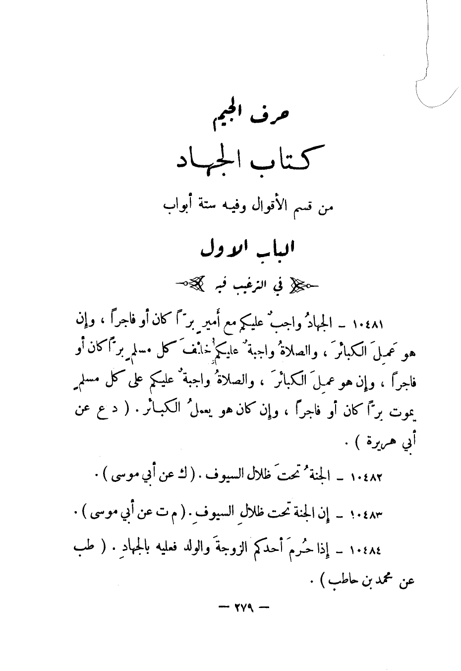 حرف الجيم: كتاب الجهاد من قسم الأقوال