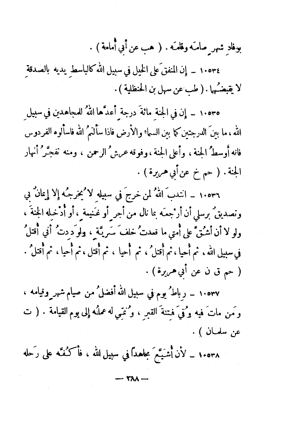 10538- "لأن أشيع مجاهدا في سبيل الله، فأكفه على رحله