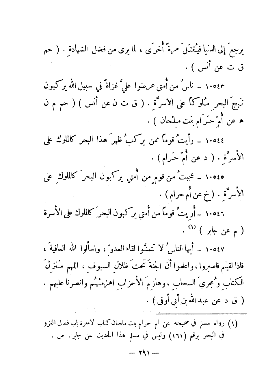 10546- "أريت قوما من أمتي يركبون البحر كالملوك على الأسرة". "م عن جابر"1.