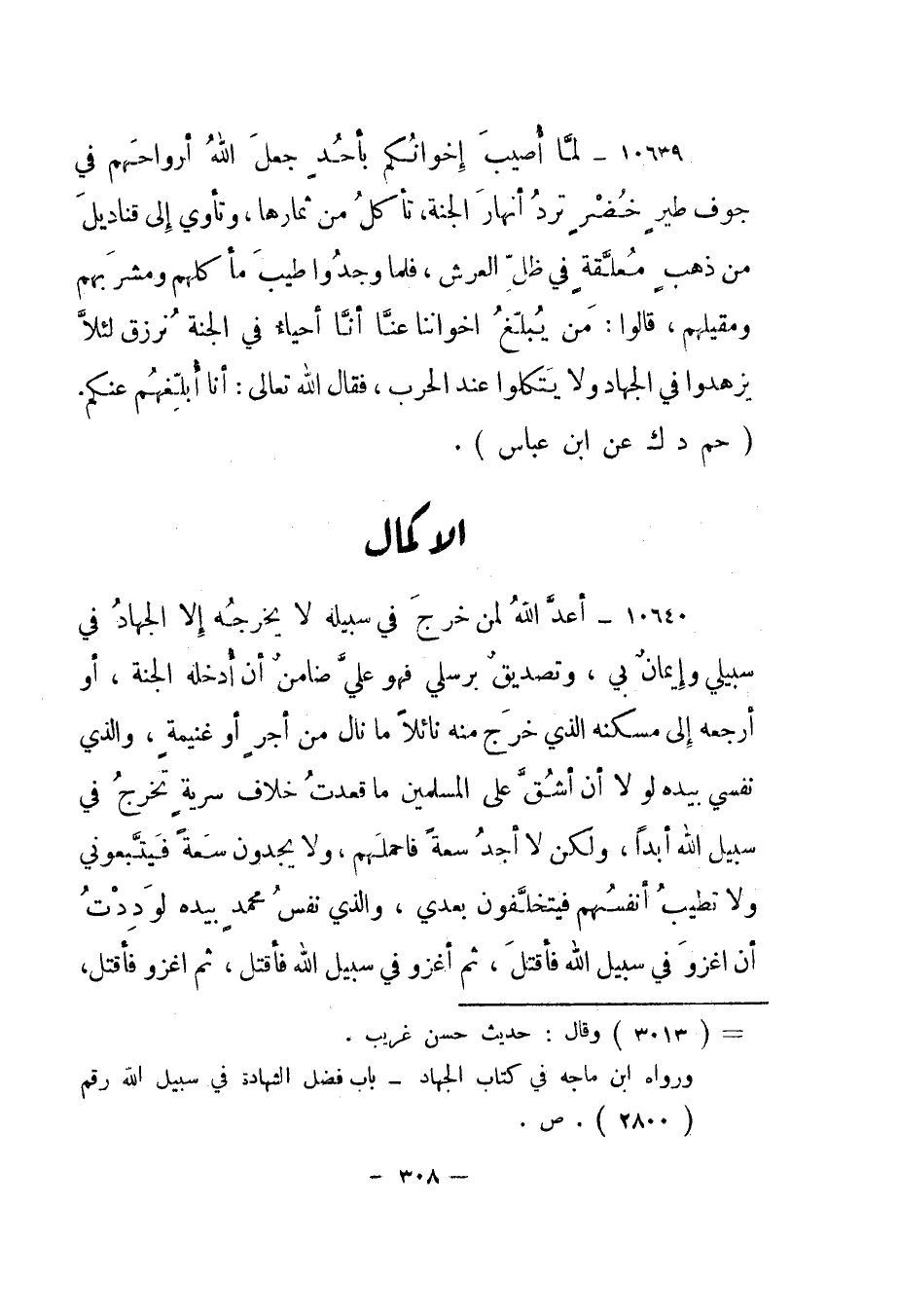 ورواه ابن ماجه في كتاب الجهاد - باب فضل الشهادة في سبيل الله رقم "2800". ص".