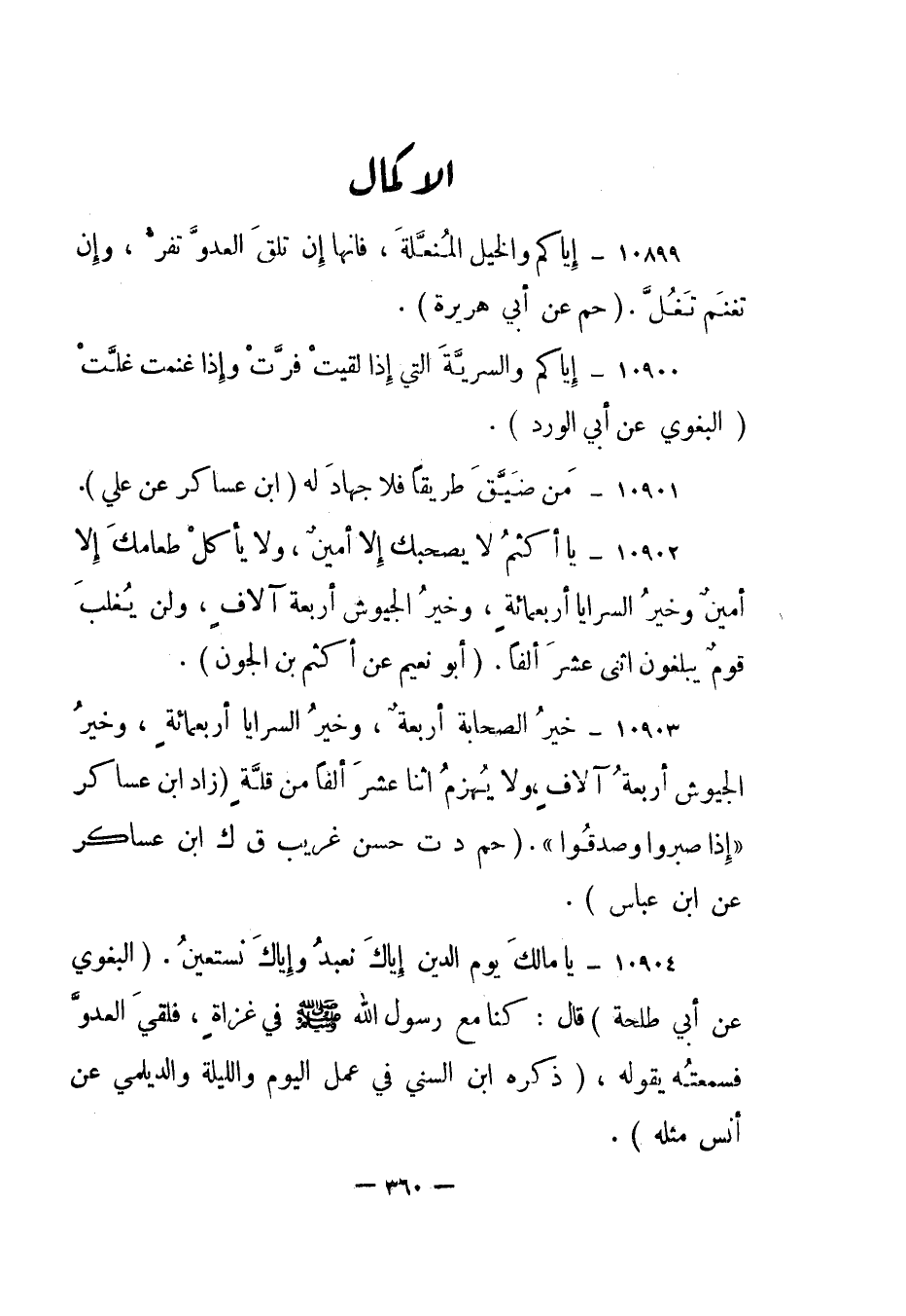 10902- "يا أكثم لا يصحبك إلا أمين، ولا يأكل طعامك إلا أمين وخير السرايا أربعمائة، وخير الجيوش أربعة آلاف، ولن يغلب قوم يبلغون اثنى عشر ألفا". "أبو نعيم عن أكثم بن الجون".