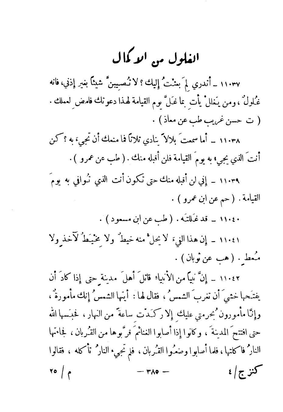 11041- "إن هذا الفيء لا يحل منه خيط ولا مخيط لأخذ ولا معط". "هب عن ثوبان".