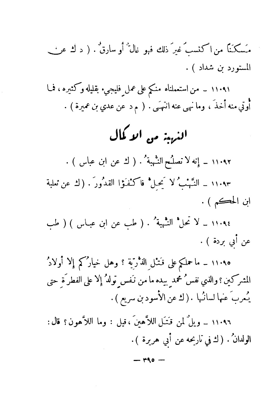 11095- "ما حملكم على قتل الذرية؟ وهل خياركم إلا أولاد المشركين؟ والذي نفس محمد بيده ما من نفس تولد إلا على الفطرة حتى يعرب عنها لسانها". "ك عن الأسود بن سريع".