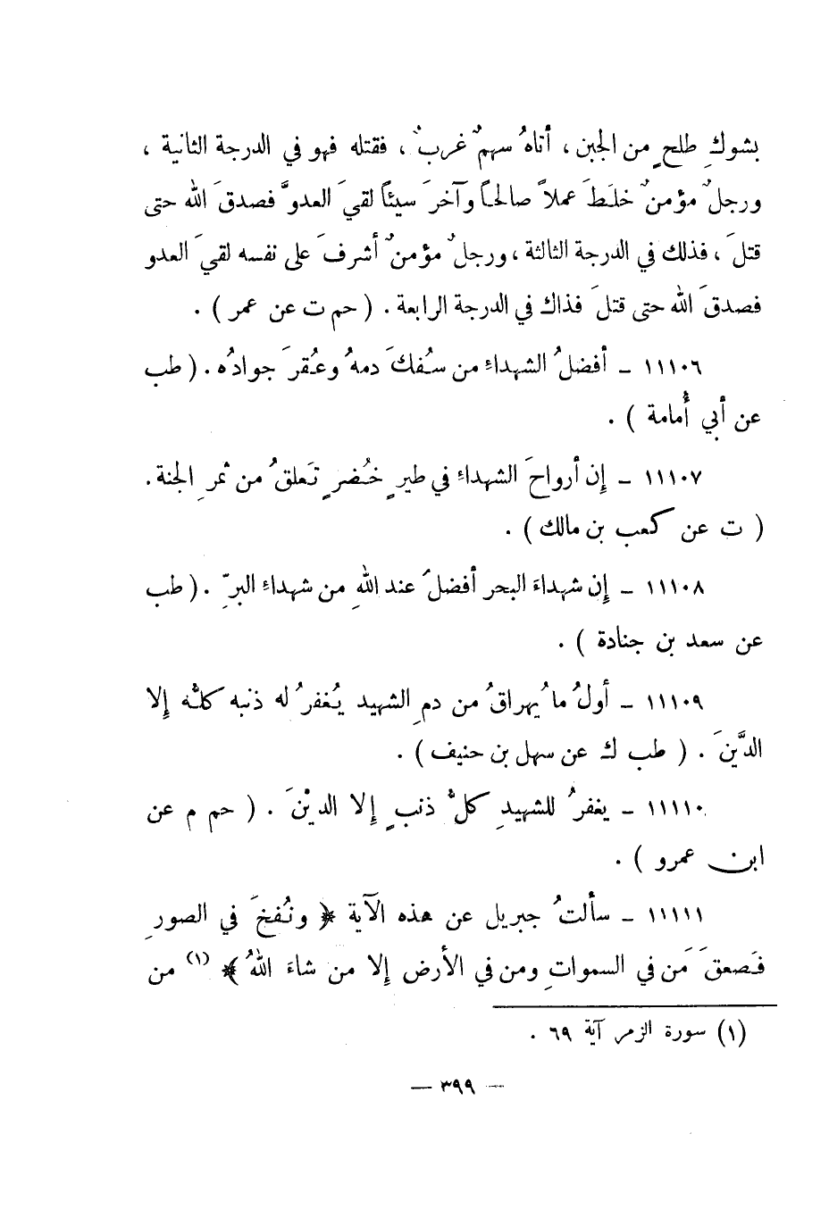 11109- "أول ما يهراق من دم الشهيد يغفر له ذنبه كله إلا الدين". "طب ك عن سهل بن حنيف".