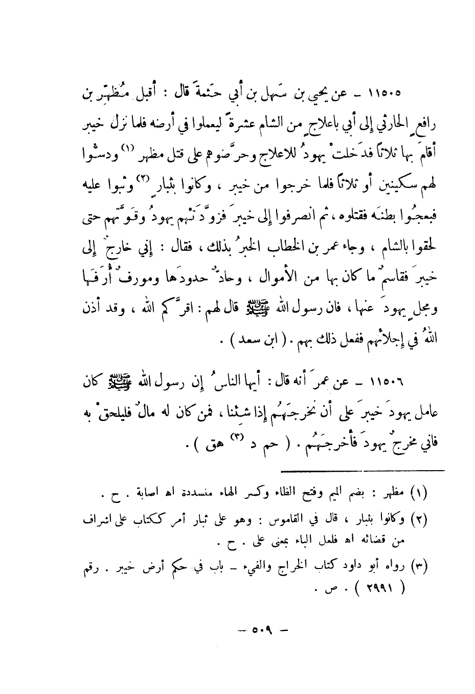 3 رواه أبو داود كتاب الخراج والفيء - باب في حكم أرض خيبر. رقم "2991". ص.