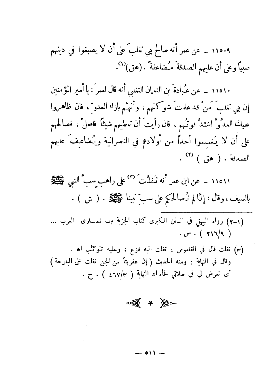 1 رواه البيهقي في السنن الكبرى كتاب الجزية باب نصارى العرب ... "9/216". ص.