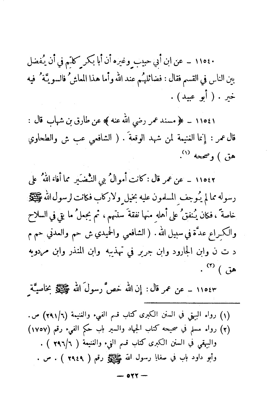 2 رواه مسلم في صحيحه كتاب الجهاد والسير باب حكم الفيء رقم "1757" والبيهقي في السنن الكبرى كتاب قسم الفيء والغنيمة "6/296".