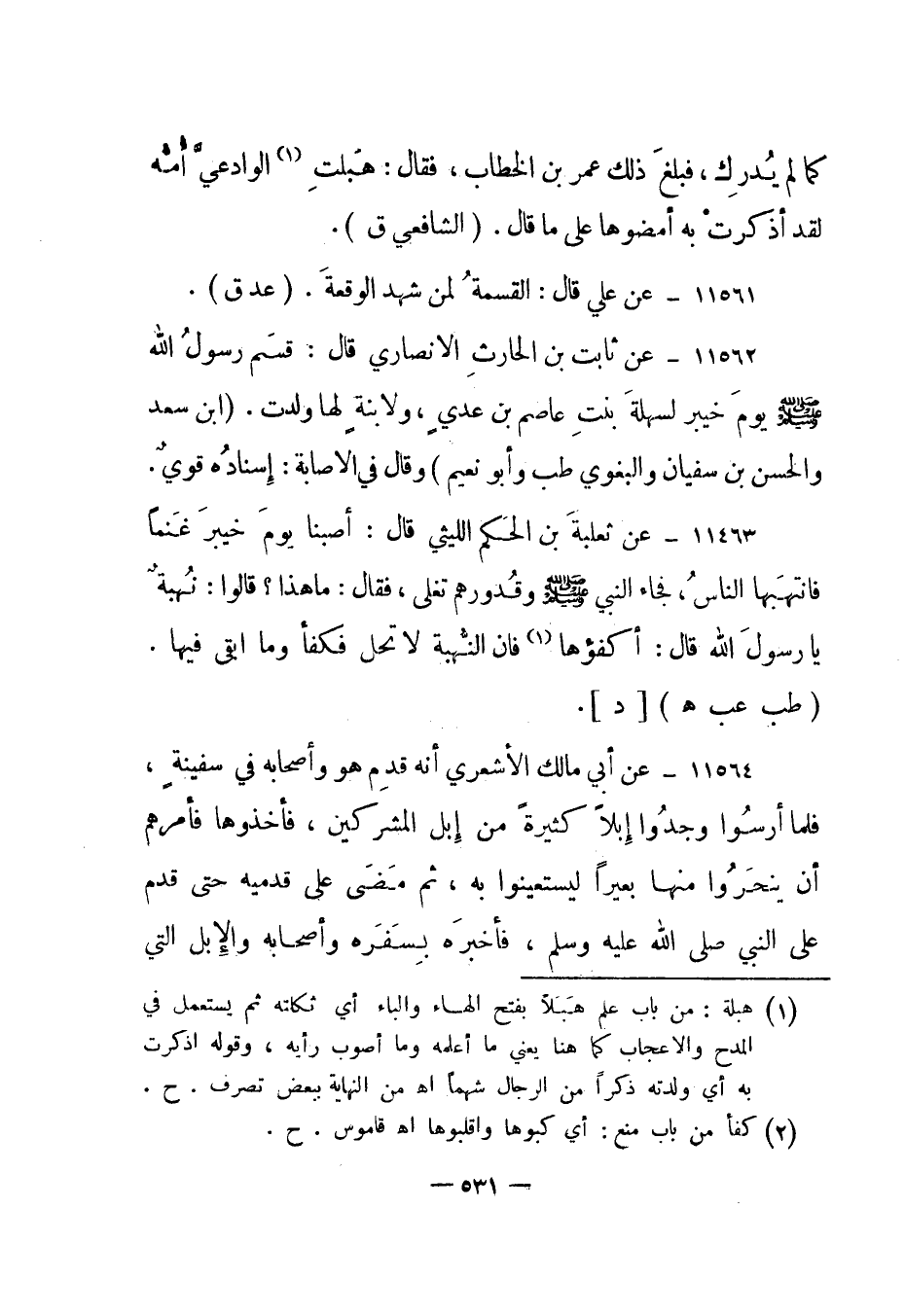11561- عن علي قال: القسمة لمن شهد الوقعة. "عد ق".