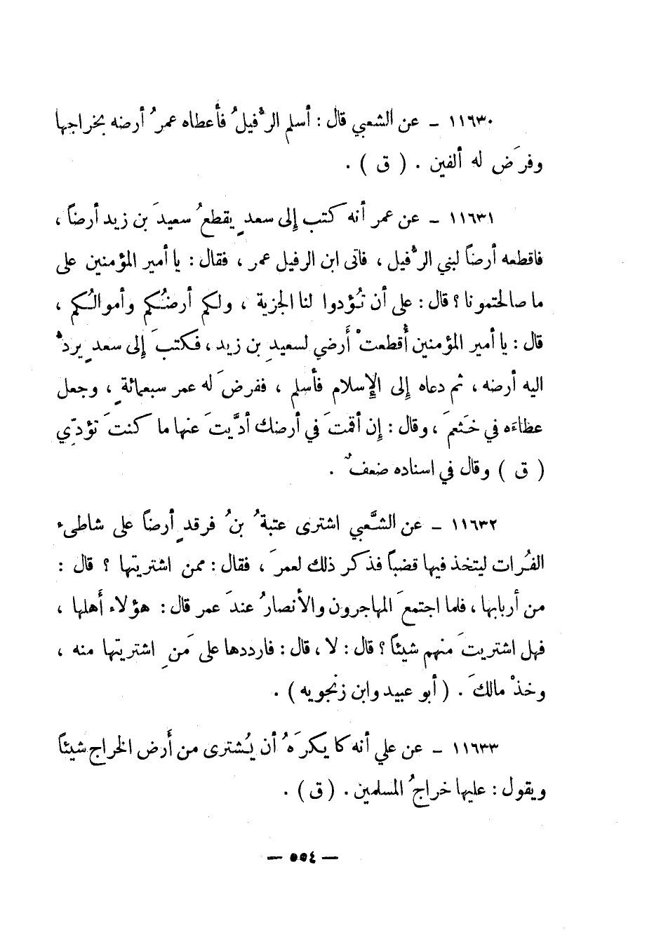 11633- عن علي أنه كان يكره أن يشترى من أرض الخراج شيئا ويقول: عليها خراج المسلمين. "ق".