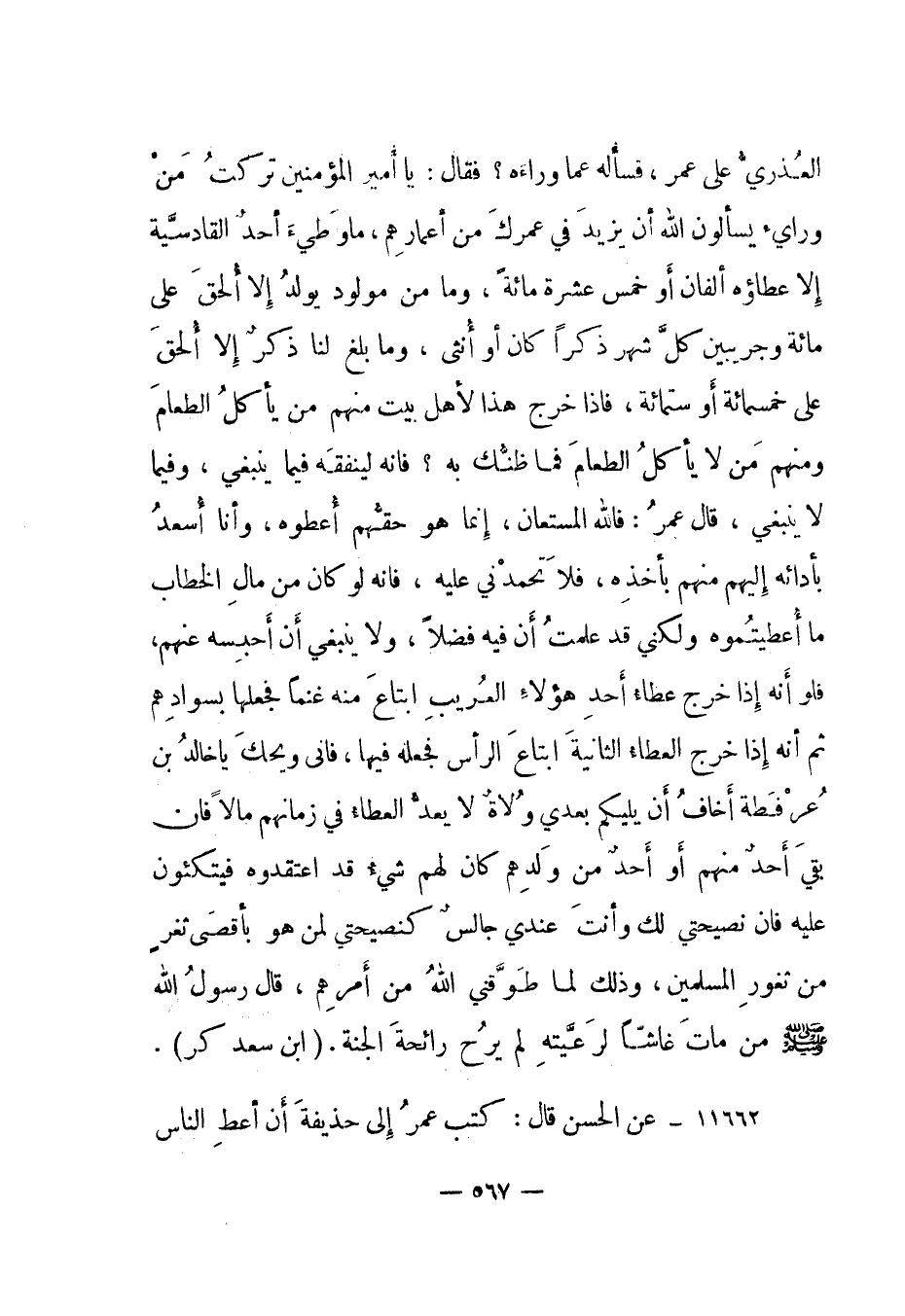 11662- عن الحسن قال: كتب عمر إلى حذيفة أن أعط الناس