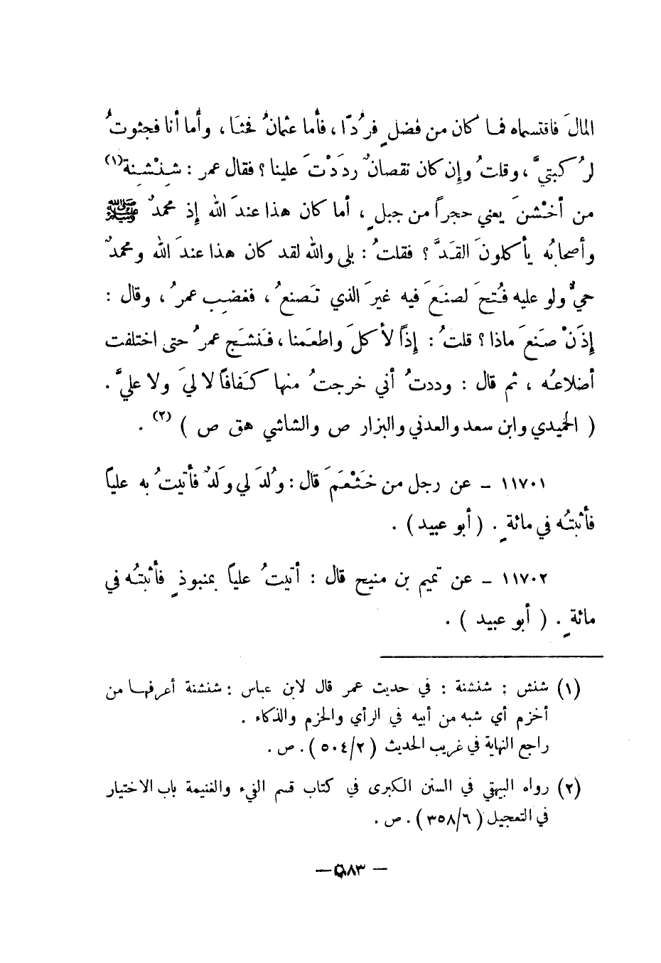 11702- عن تميم بن منيح قال: أتيت عليا بمنبوذ فأثبته في مائة. "أبو عبيد".