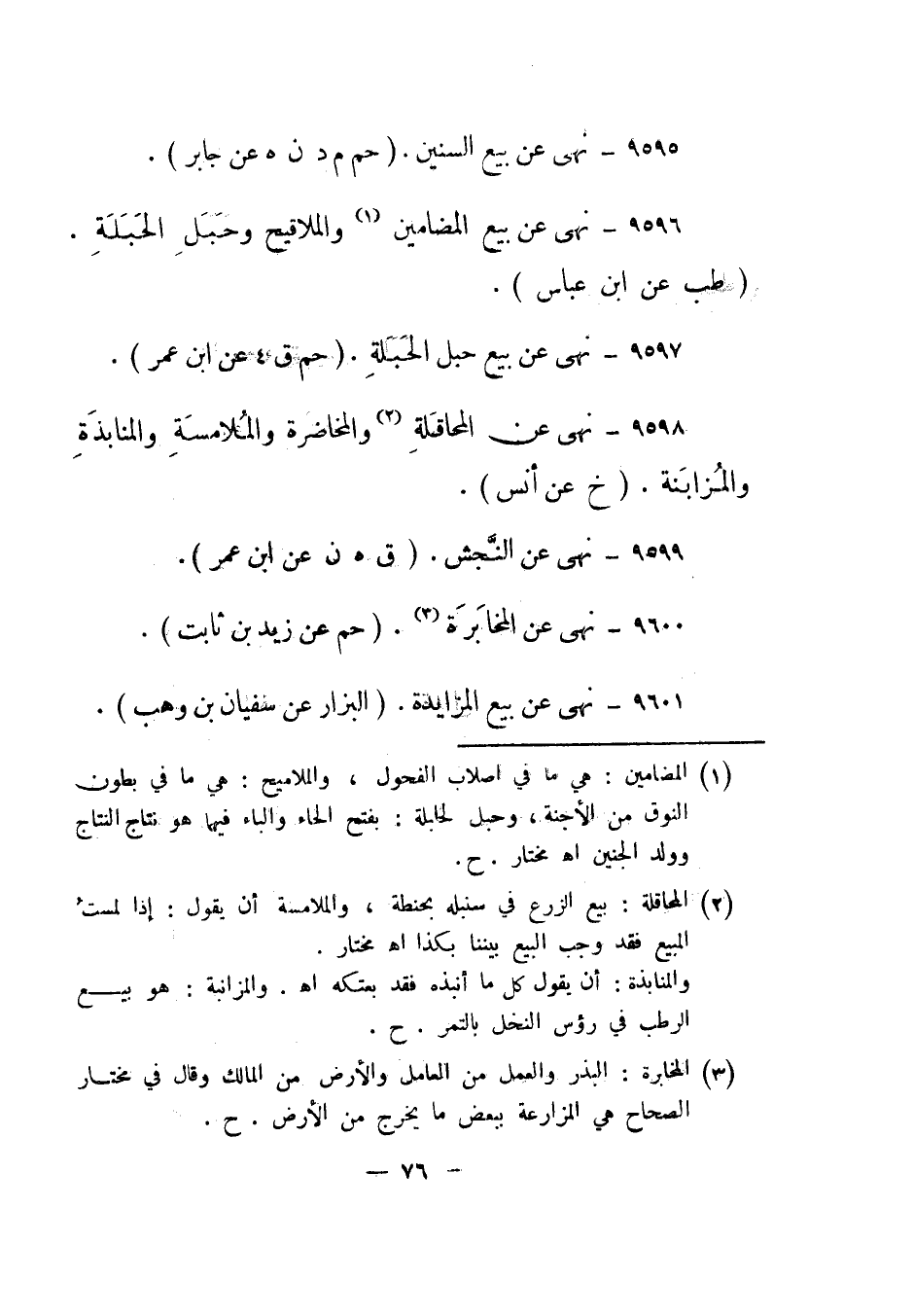 9597- "نهى عن بيع حبل الحبلة". "حم ق 4 عن ابن عمر".