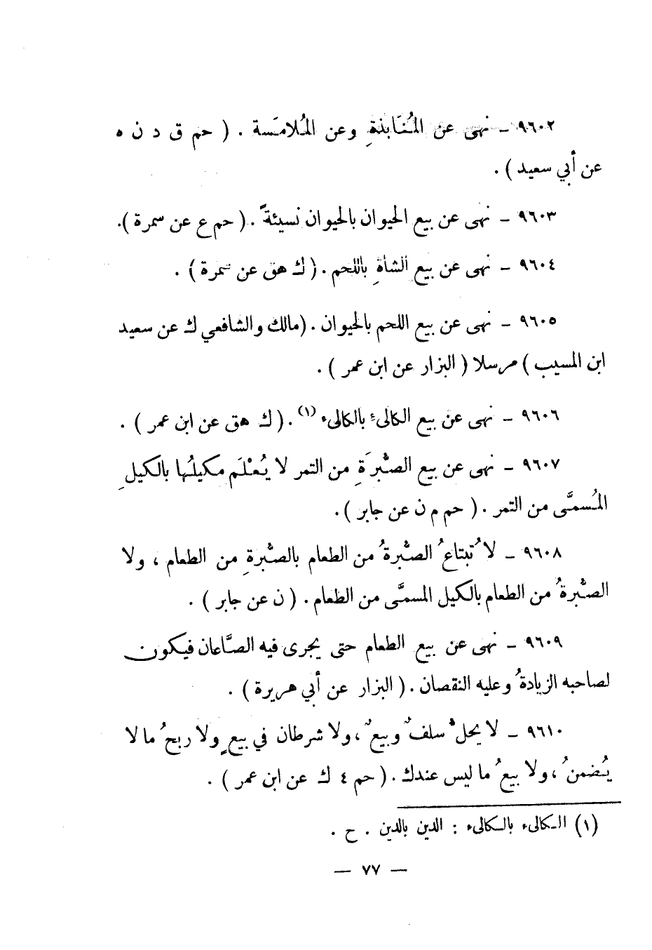 9606- "نهى عن بيع الكالئ بالكالئ1". "ك هق عن ابن عمر".