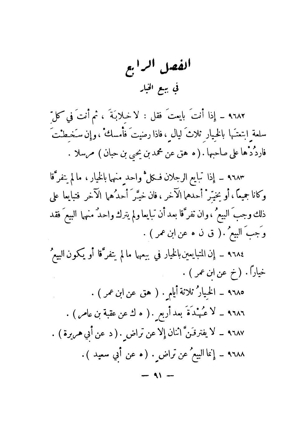 9685- "الخيار ثلاثة أيام". "هق عن ابن عمر".