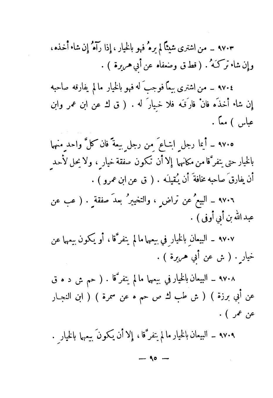 9706- "البيع عن تراض، والتخيير بعد صفقة". "عب عن عبد الله بن أبي أوفى".