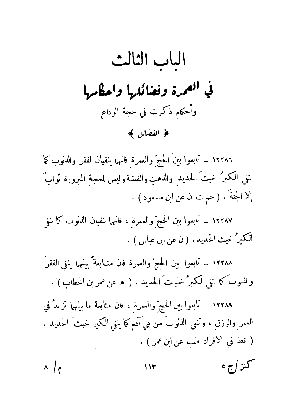 الباب الثالث: في العمرة وفضائلها واحكامها