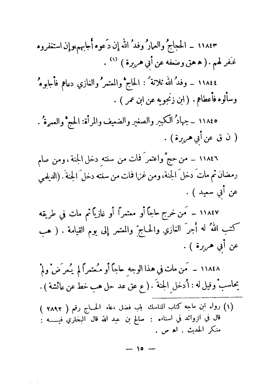 11845- جهاد الكبير والصغير والضعيف والمرأة: الحج والعمرة. " ن ق عن أبي هريرة".