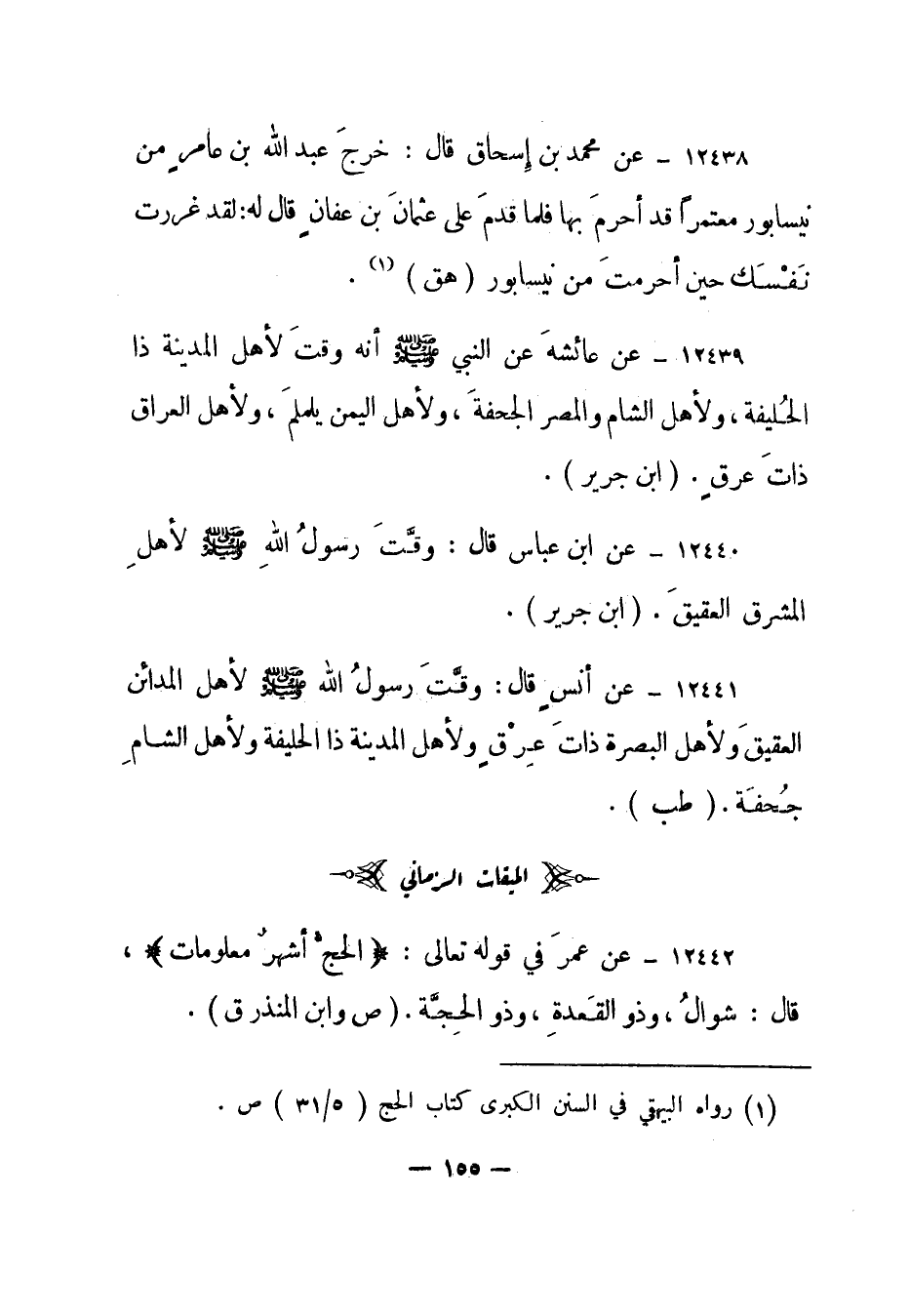 12440- عن ابن عباس قال: وقت رسول الله صلى الله عليه وسلم لأهل المشرق العقيق. "ابن جرير".