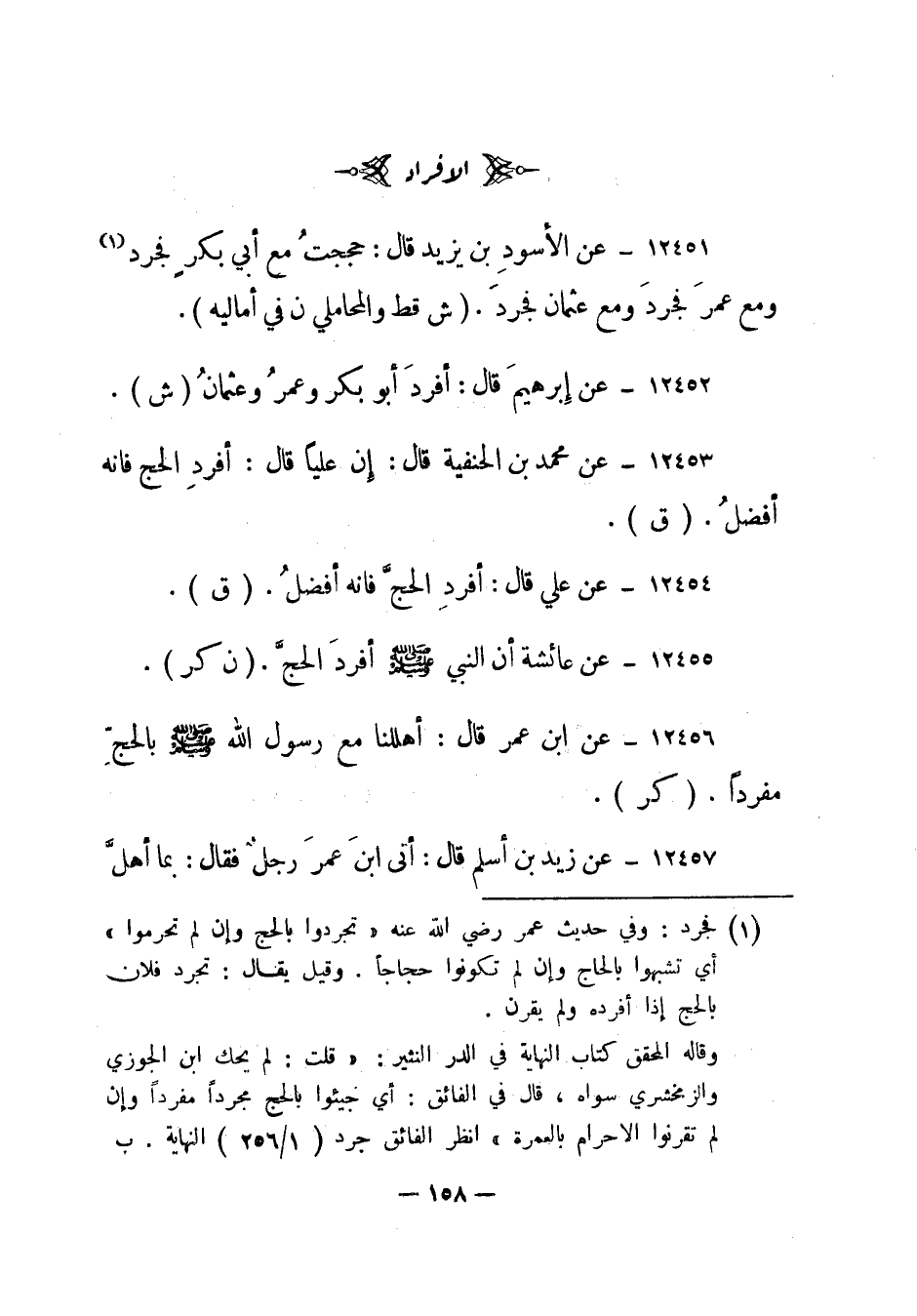 12456- عن ابن عمر قال: أهللنا مع رسول الله صلى الله عليه وسلم بالحج مفردا. "كر".