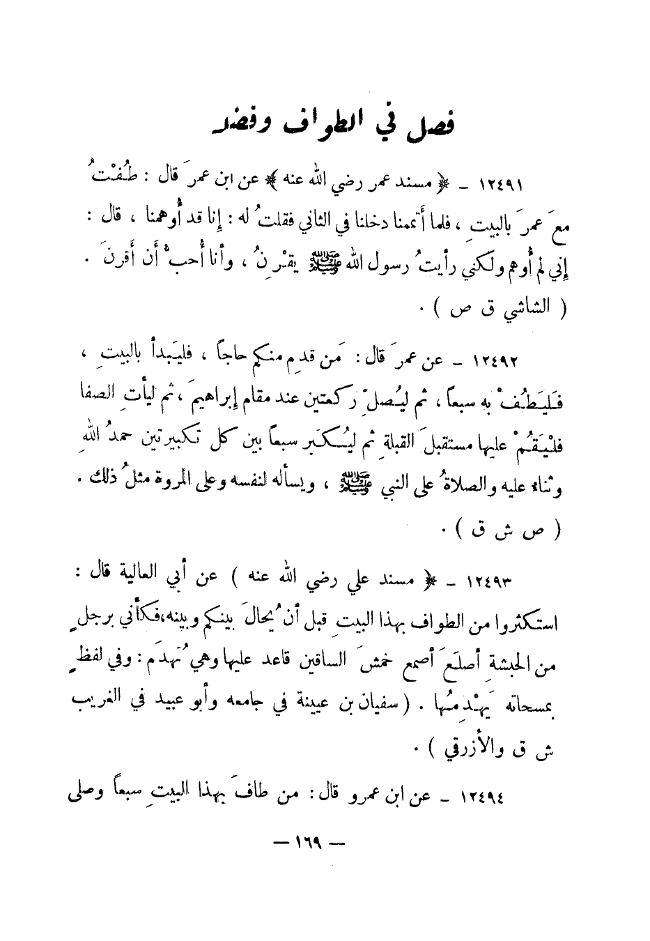 12492- عن عمر قال: من قدم منكم حاجا، فليبدأ بالبيت، فليطف به سبعا، ثم ليصل ركعتين عند مقام إبراهيم، ثم ليأت الصفا فليقم عليها مستقبل القبلة ثم ليكبر سبعا بين كل تكبيرتين حمد الله وثناء عليه والصلاة على النبي صلى الله عليه وسلم، ويسأله لنفسه وعلى المروة مثل ذلك. "ص ش ق".