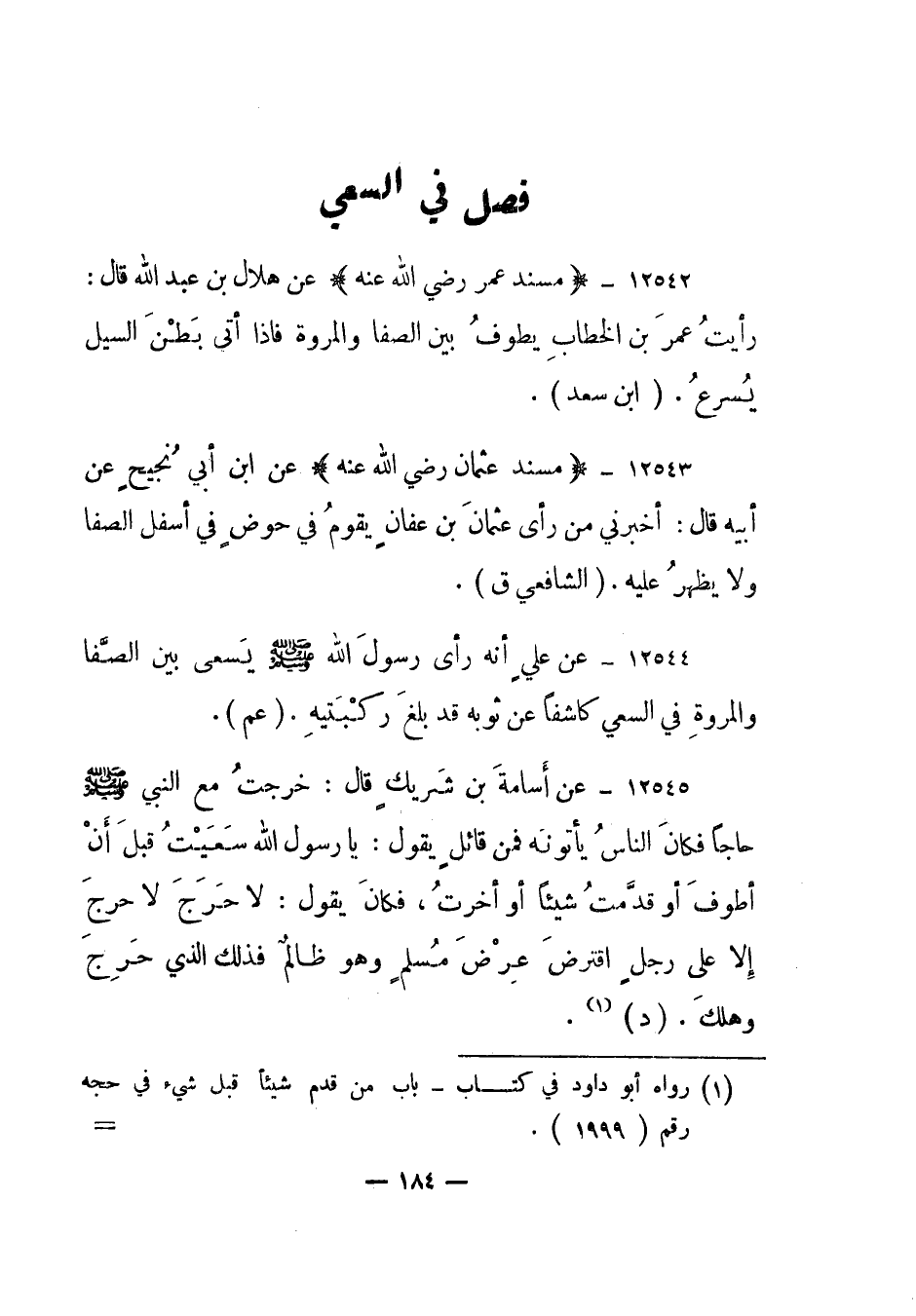 12545- عن أسامة بن شريك قال: خرجت مع النبي صلى الله عليه وسلم حاجا فكان الناس يأتونه فمن قائل يقول: يا رسول الله سعيت قبل أن أطوف أو قدمت شيئا أو أخرت، فكان يقول: لا حرج لا حرج إلا على رجل اقترض عرض مسلم وهو ظالم فذلك الذي حرج وهلك. "د"1