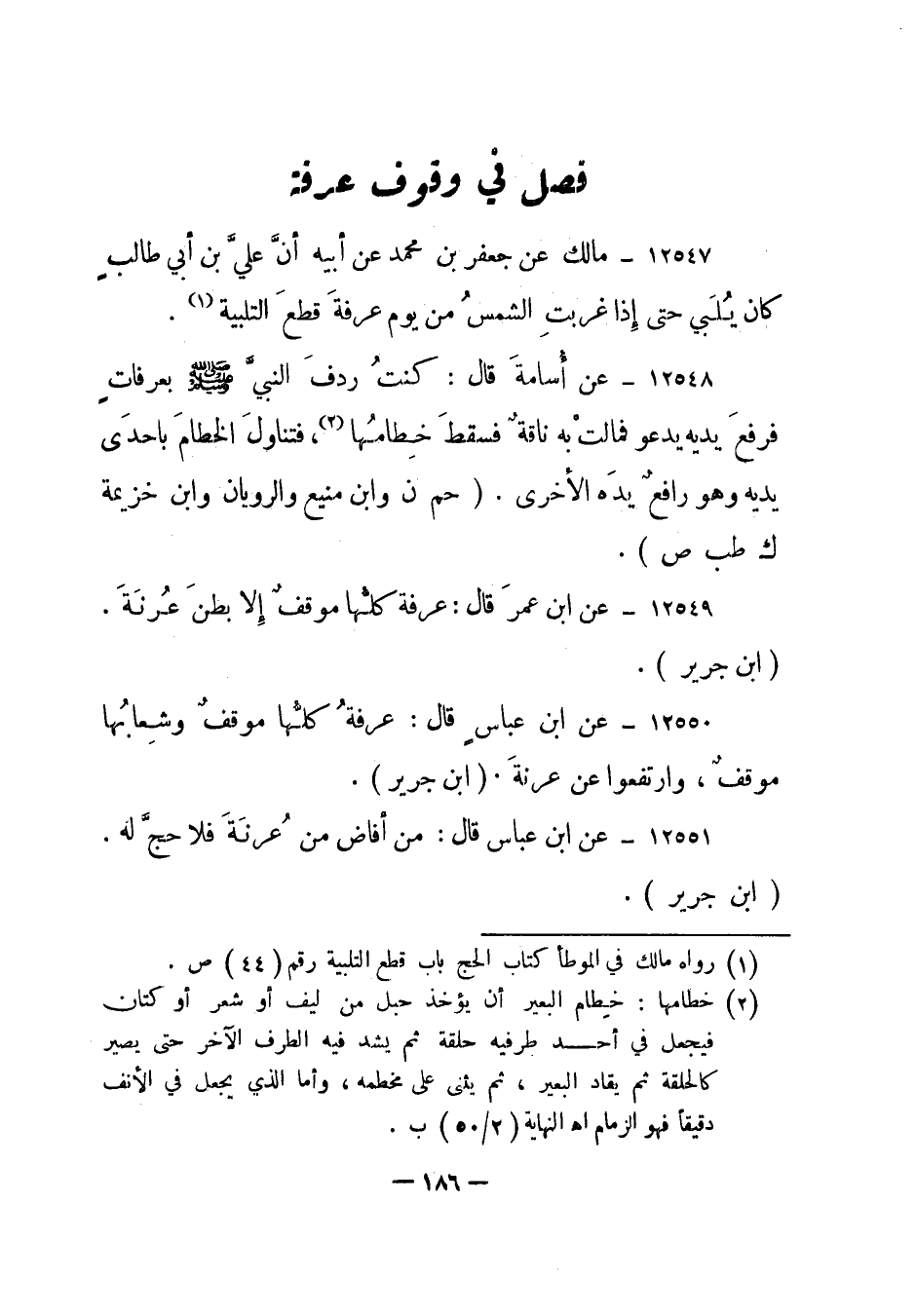 1 رواه مالك في الموطأ كتاب الحج باب قطع التلبية رقم "44" ص.