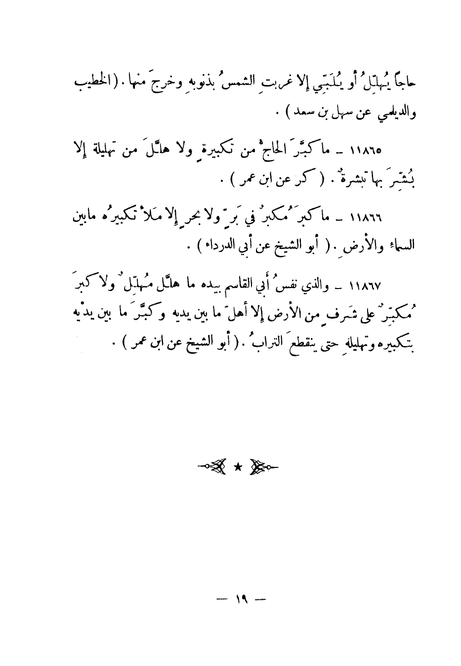 11865- ما كبر الحاج من تكبيرة ولا هلل من تهليلة إلا بشر بها تبشرة. "كر عن ابن عمر".