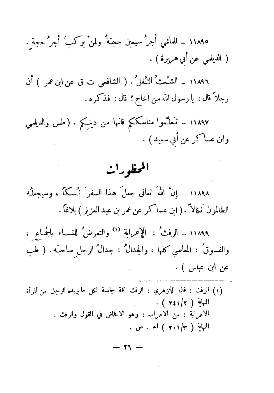 11895- للماشي أجر سبعين حجة ولمن يركب أجر حجة. "الديلمي عن أبي هريرة".