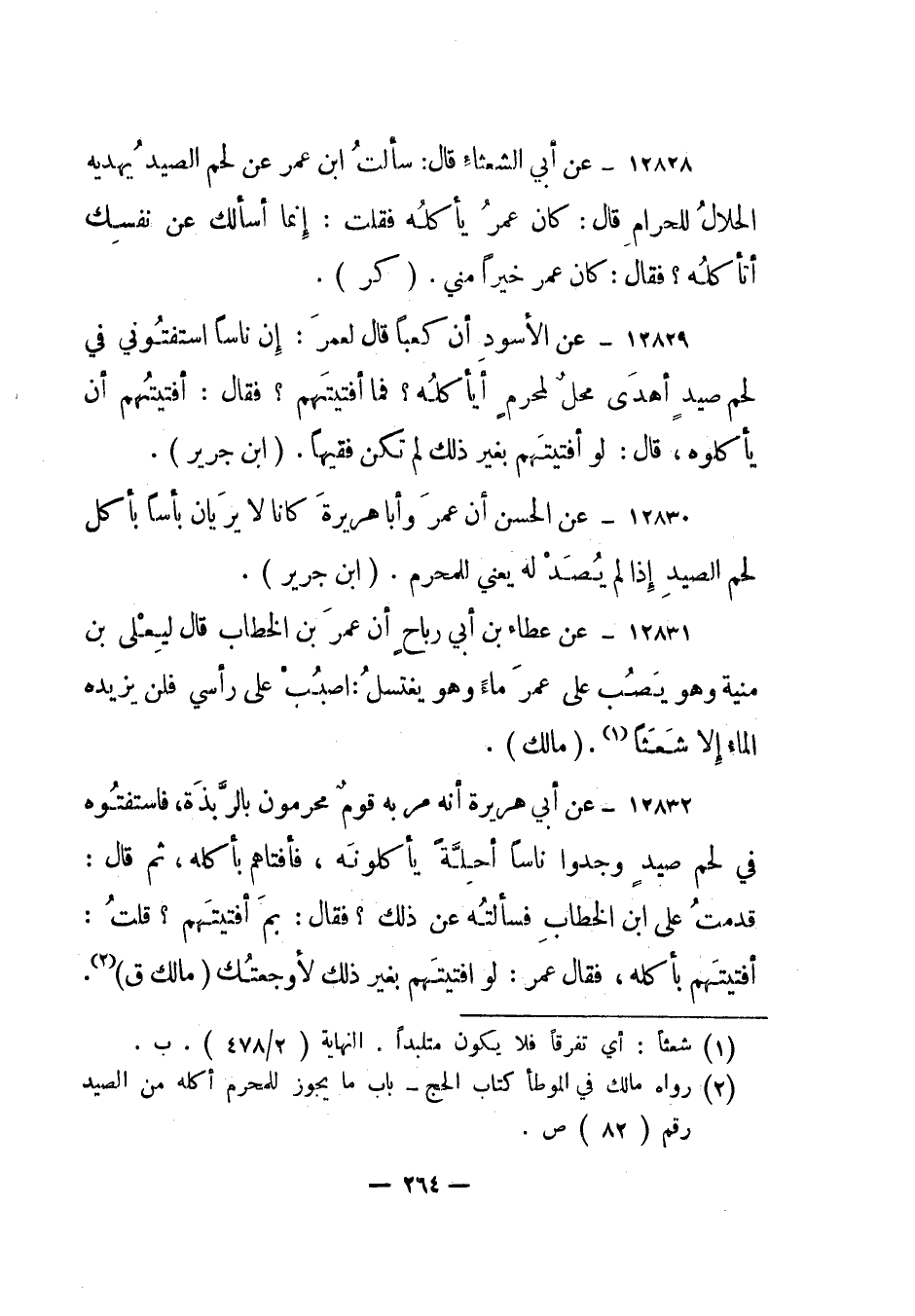 2 رواه مالك في الموطأ كتاب الحج - باب ما يجوز للمحرم أكله من الصيد رقم "82" ص.