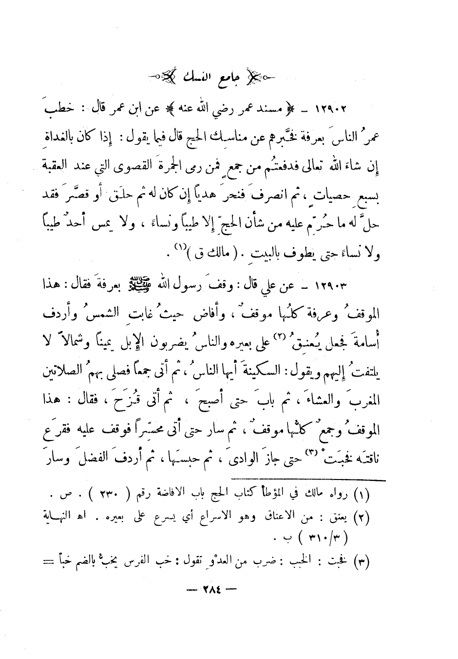 1 رواه مالك في الموطأ كتاب الحج باب الإفاضة رقم "230". ص.