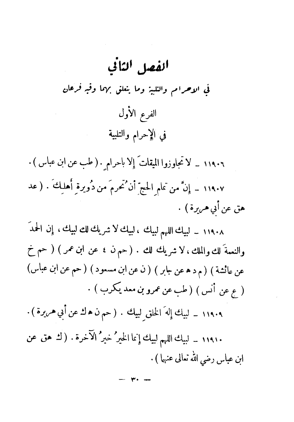 الفصل الثاني: في الإحرام والتلبية وما يتعلق بهما وفيه فرعان