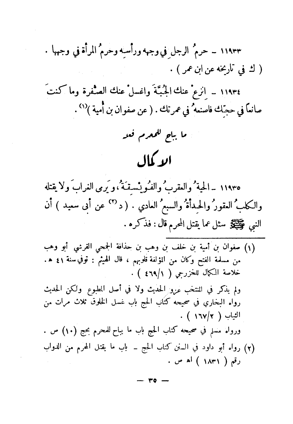 11935- الحية والعقرب والفويسقة، ويرمي الغراب ولا يقتله والكلب العقور والحدأة والسبع العادي.