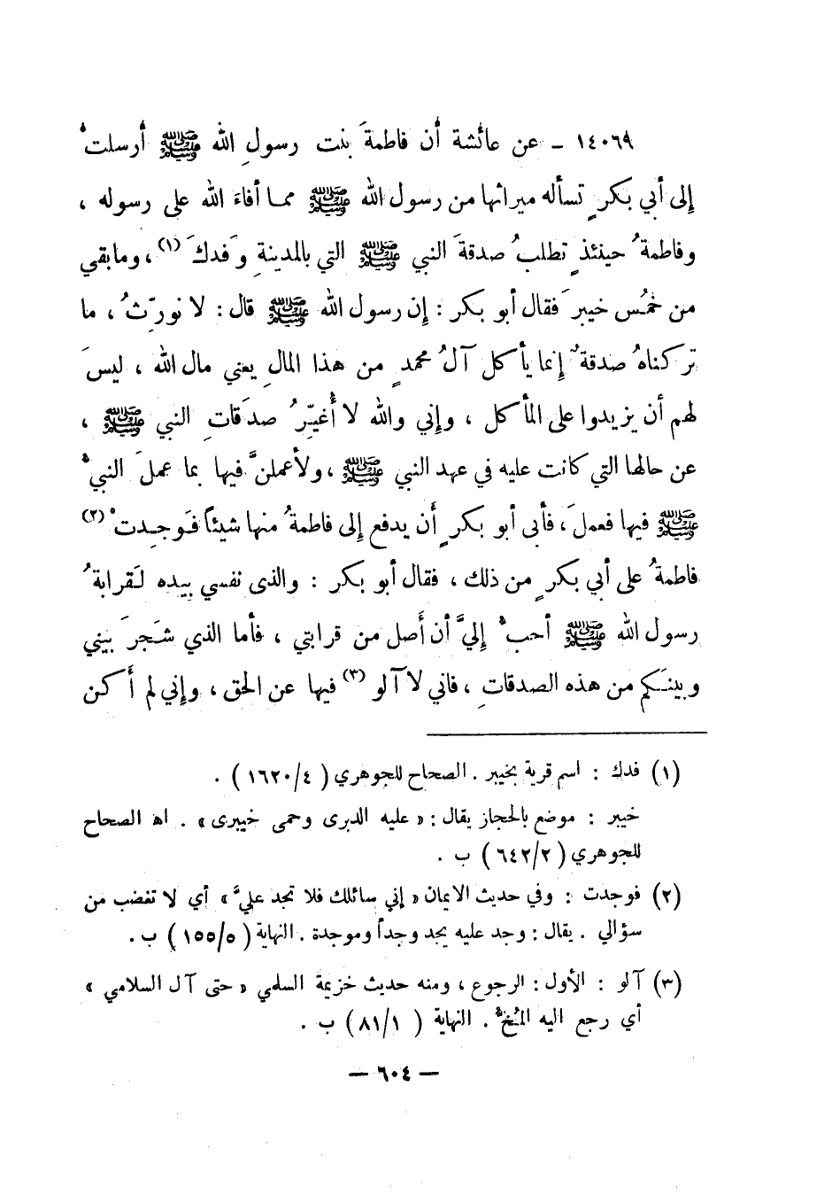 14069- عن عائشة أن فاطمة بنت رسول الله صلى الله عليه وسلم أرسلت إلى أبي بكر تسأله ميراثها من رسول الله صلى الله عليه وسلم مما أفاء الله على رسوله، وفاطمة حينئذ تطلب صدقة النبي صلى الله عليه وسلم التي بالمدينة وفدك1 وما بقي من خمس خيبر فقال أبو بكر: إن رسول الله صلى الله عليه وسلم قال: لا نورث، ما تركناه صدقة إنما يأكل آل محمد من هذا المال يعني مال الله، ليس لهم أن يزيدوا على المأكل، وإني والله لا أغير صدقات النبي صلى الله عليه وسلم، عن حالها التي كانت عليه في عهد النبي صلى الله عليه وسلم، ولأعملن فيها بما عمل النبي صلى الله عليه وسلم فيها فعمل، فأبى أبو بكر أن يدفع إلى فاطمة منها شيئا فوجدت2 فاطمة على أبي بكر من ذلك، فقال أبو بكر: والذي نفسي بيده لقرابة رسول الله صلى الله عليه وسلم أحب إلي أن أصل من قرابتي، فأما الذي شجر بيني وبينكم من هذه الصدقات، فإني لا آلو3 فيها عن الحق، وإني لم أكن