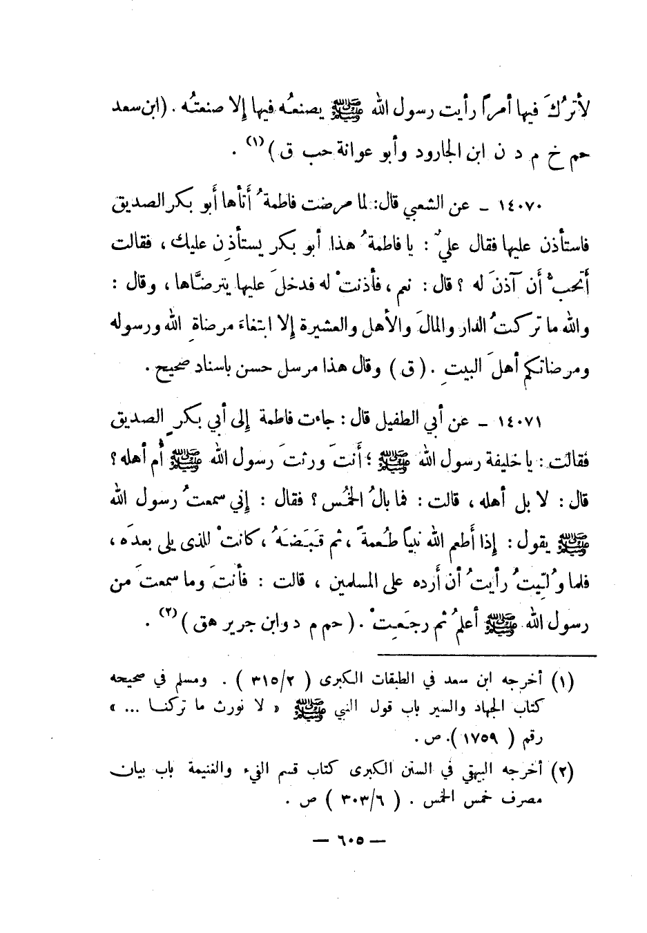1 أخرجه ابن سعد في الطبقات الكبرى "2/315". ومسلم في صحيحه كتاب الجهاد والسير باب قول النبي صلى الله عليه وسلم "لانورث ما تركنا ... " رقم "1759". ص.