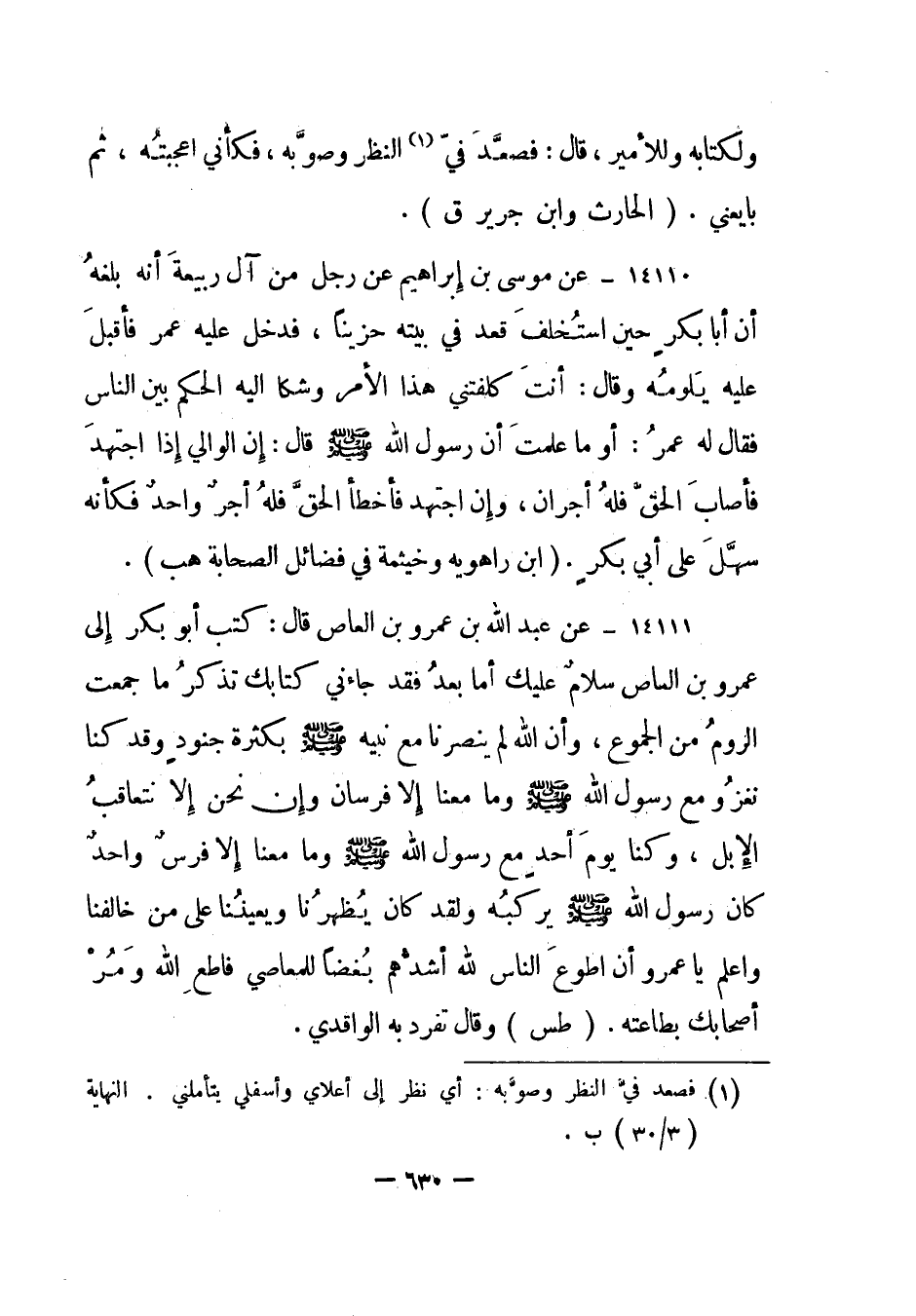 ولكتابه وللأمير، قال: فصعد في1 النظر وصوبه، فكأني أعجبته، ثم بايعني."الحارث وابن جرير ق".
