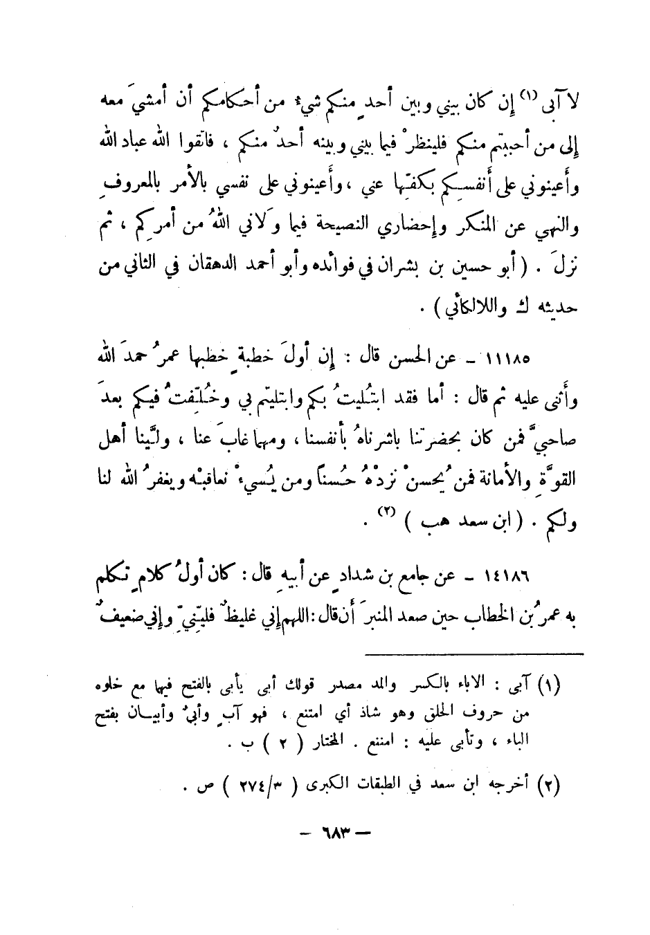14185- عن الحسن قال: إن أول خطبة خطبها عمر حمد الله وأثنى عليه ثم قال: أما فقد ابتليت بكم وابتليتم بي وخلفت فيكم بعد صاحبي فمن كان بحضرتنا باشرناه بأنفسنا، ومهما غاب عنا، ولينا أهل القوة والأمانة فمن يحسن نزده حسنا ومن يسيء نعاقبه ويغفر الله لنا ولكم. "ابن سعد هب"2