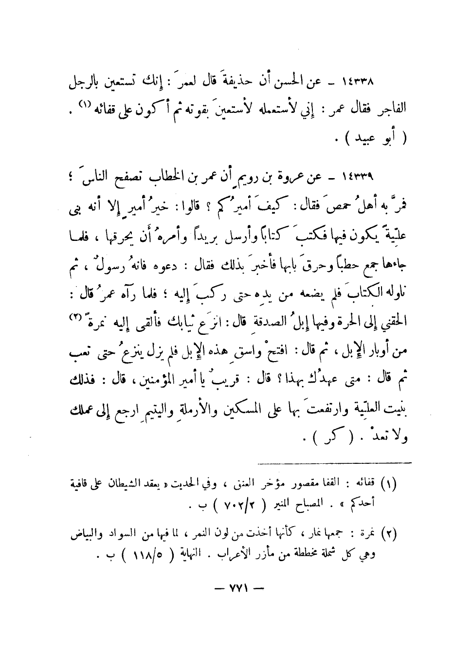 14338- عن الحسن أن حذيفة قال لعمر: إنك تستعين بالرجل الفاجر فقال عمر: إني لأستعمله لأستعين بقوته ثم أكون على قفائه1 "أبو عبيد".