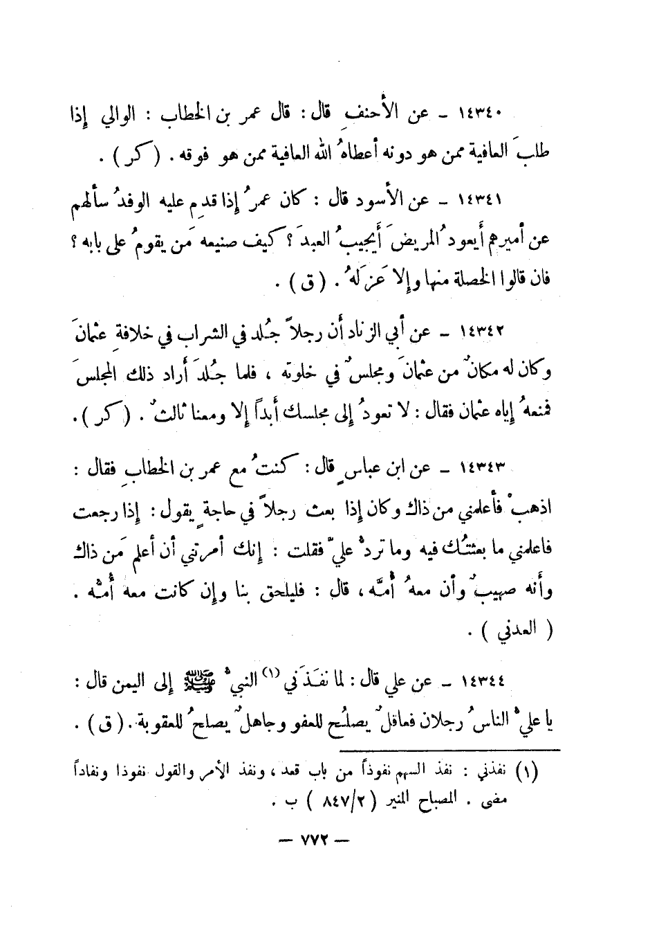 14341- عن الأسود قال: كان عمر إذا قدم عليه الوفد سألهم عن أميرهم أيعود المريض أيجيب العبد؟ كيف صنيعه من يقوم على بابه؟ فإن قالوا الخصلة منها وإلا عزله. "ق".