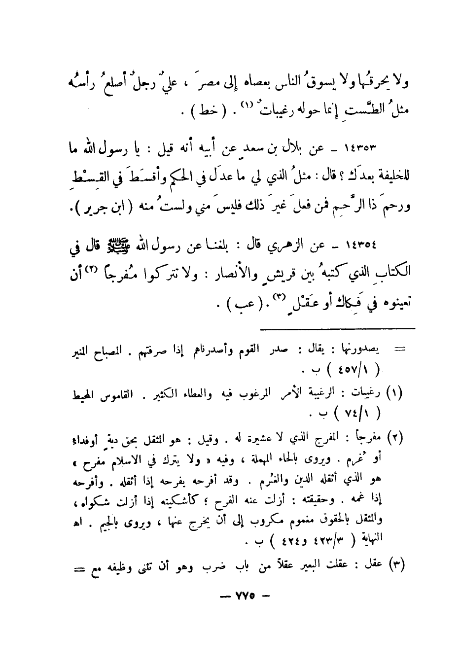 14354- عن الزهري قال: بلغنا عن رسول الله صلى الله عليه وسلم قال في الكتاب الذي كتبه بين قريش والأنصار: ولا تتركوا مفرجا2 أن تعينوه في فكاك أو عقل3 "عب".
