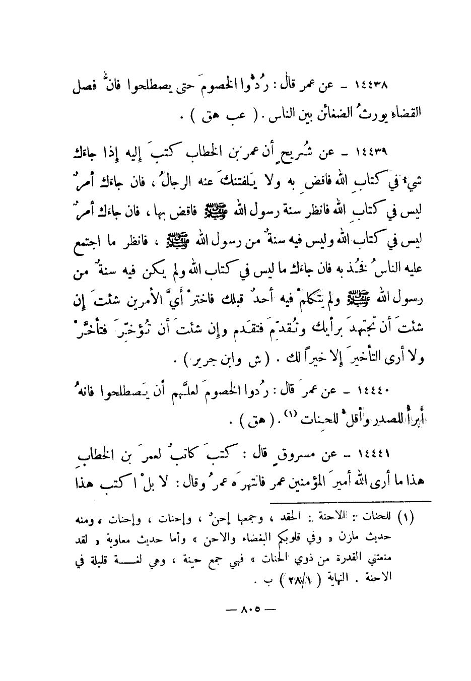 14438- عن عمر قال: ردوا الخصوم حتى يصطلحوا فإن فصل القضاء يورث الضغائن بين الناس. "عب هق".