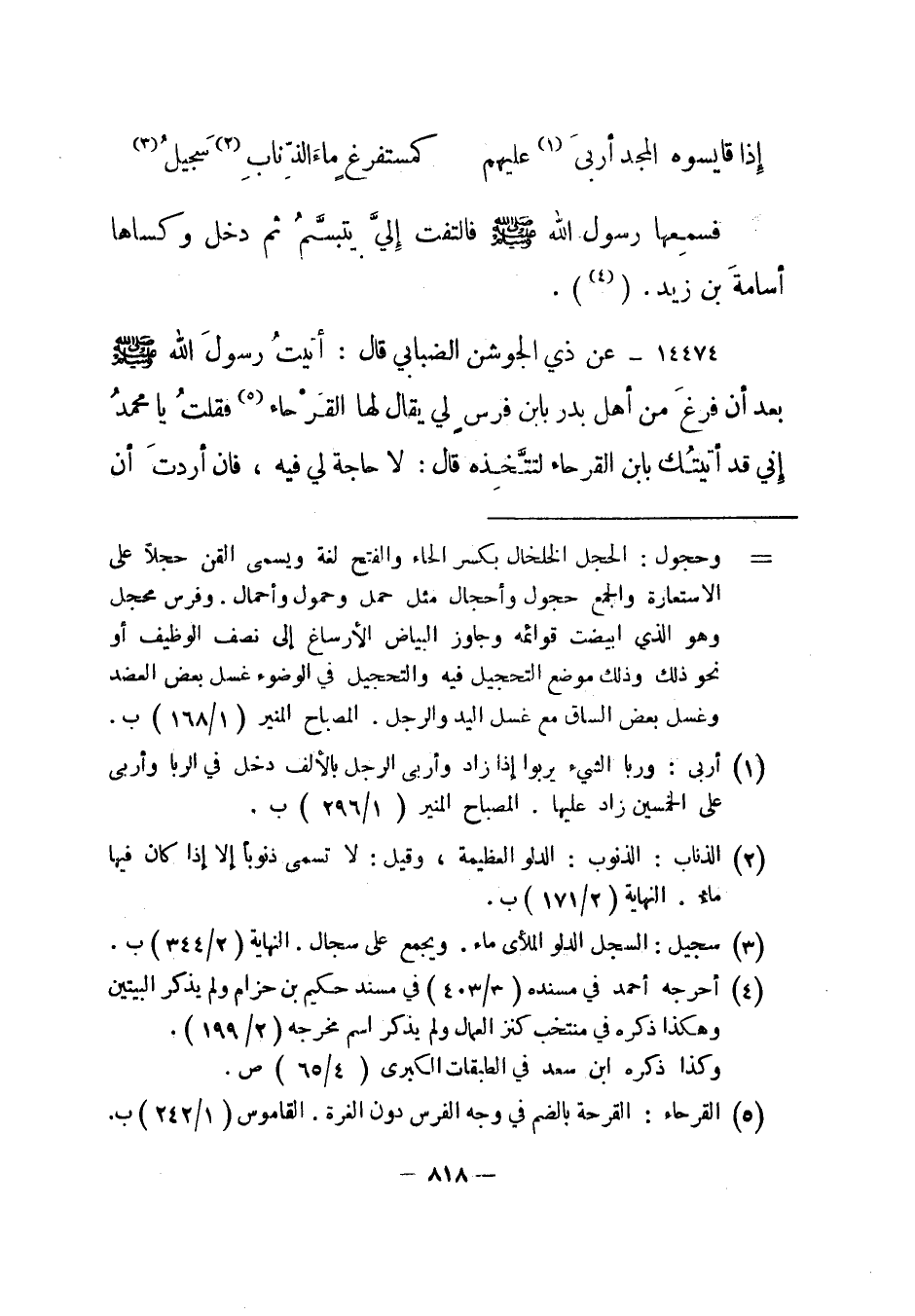 14474- عن ذي الجوشن الضبابي قال: أتيت رسول الله صلى الله عليه وسلم بعد أن فرغ من أهل بدر بابن فرس لي يقال لها القرحاء5 فقلت يا محمد إني قد أتيتك بابن القرحاء لتتخذه قال: "لا حاجة لي فيه، فإن أردت أن