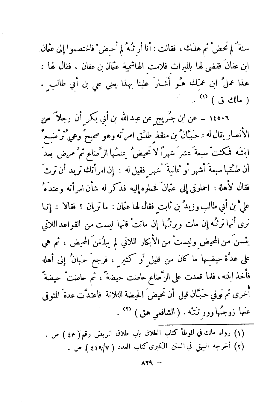 سنة لم تحض ثم هلك، فقالت: أنا أرثه لم أحض فاختصموا إلى عثمان ابن عفان فقضى لها بالميراث فلامت الهاشمية عثمان بن عفان، فقال لها: هذا عمل ابن عمك هو أشار علينا بهذا يعني علي بن أبي طالب. "مالك ق"1